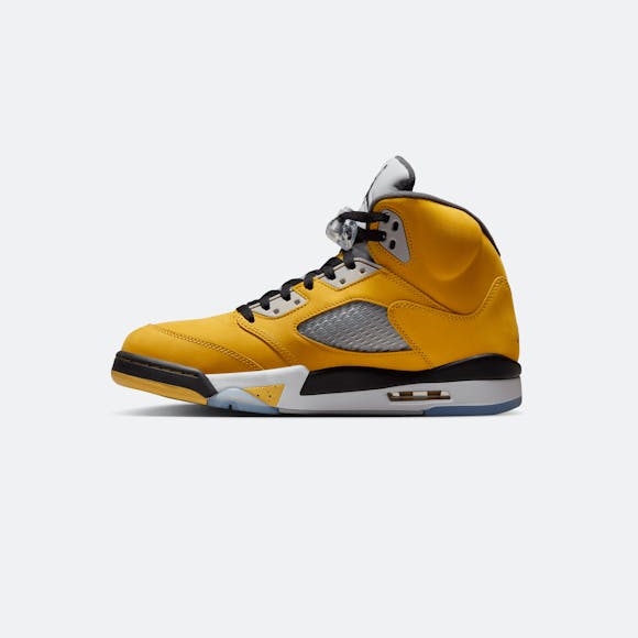 There's a reason MJ's fifth shoe remains a fan favorite. Its fierce zig-zag midsole, iconic lace locks and mesh-inspired cage make it instantly recognizable, giving you standout style that looks as good on the street as it did on the hardwood. Real and synthetic leather in the upper offers durability and structure. Nike Air unit helps provide lightweight cushioning. Rubber in the outsole helps give you durable traction.