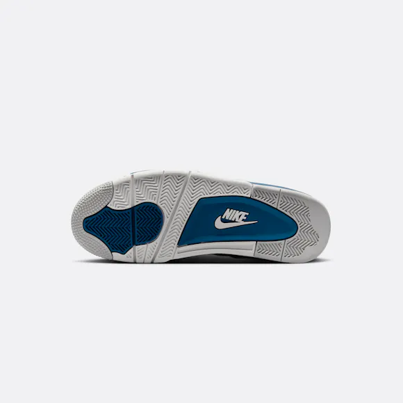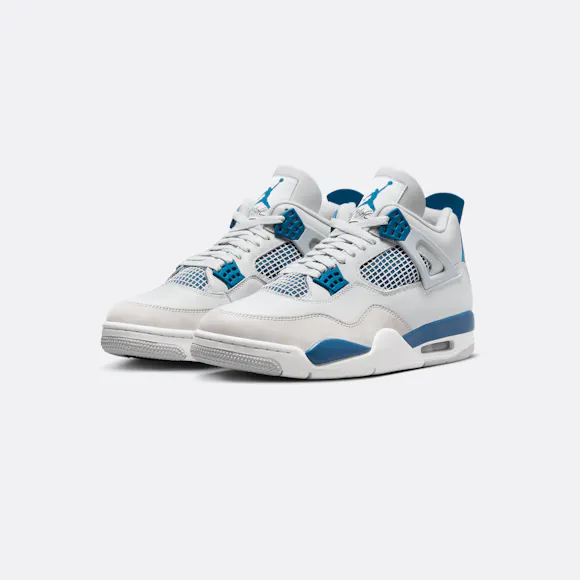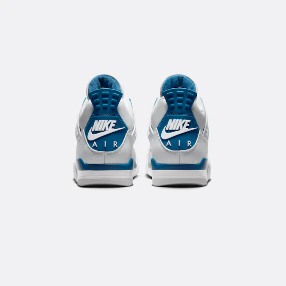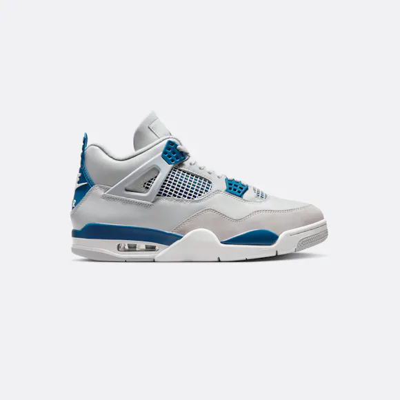 Step into a classic. The beloved AJ4 returns in premium Off-White leather, Neutral Grey nubuck and striking hits of Industrial Blue—creating an overall clean aesthetic. Staying true to form, we reengineered this icon back to its original ’89 specs with all the signature trimmings: a bold Jumpman logo, netting accents, the famous "wings" and Nike Air branding on the heel to finish off the heritage appeal.