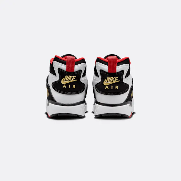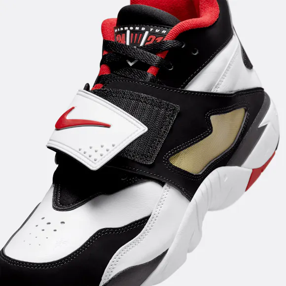 Style Number: FZ8224-100 Color: White/fire Red-black-metallic Gold The Air Diamond Turf takes this cross trainer from 1994 and gives it a street-ready refresh. This version features Air units in the heel and forefoot, plus durable leather and a midfoot strap for a secure fit. Leather upper with mesh panels is breathable and durable.Nike Air units provide comfort and cushioning for a soft underfoot feel.Rubber outsole adds traction and durability.